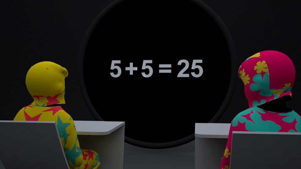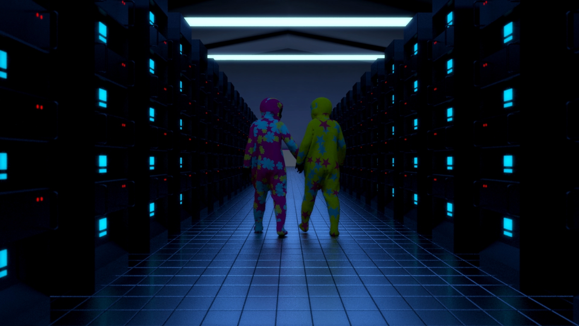 At a secure facility, two children are being hardened to survive in a totally finacialized environment.
