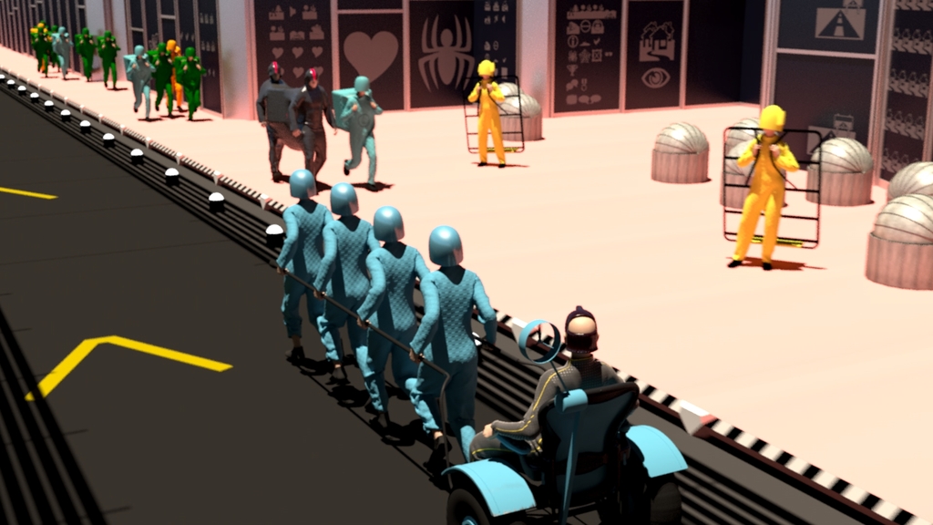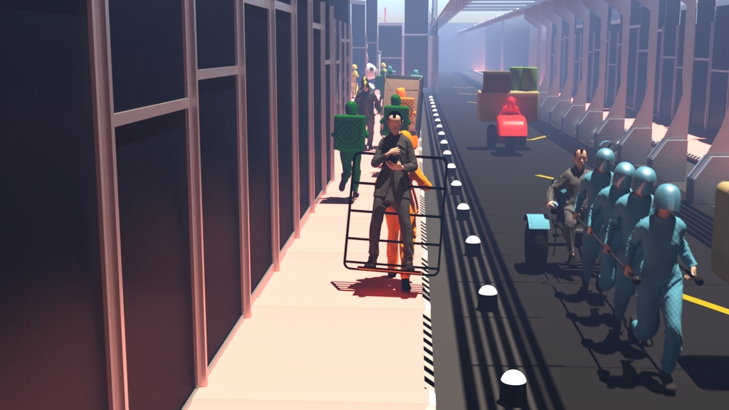The on demand economy requires round-the-clock availability for work, so folding clothing, shelter and work tools into one wearable environment removes all barriers to efficient deployment of human labour.
