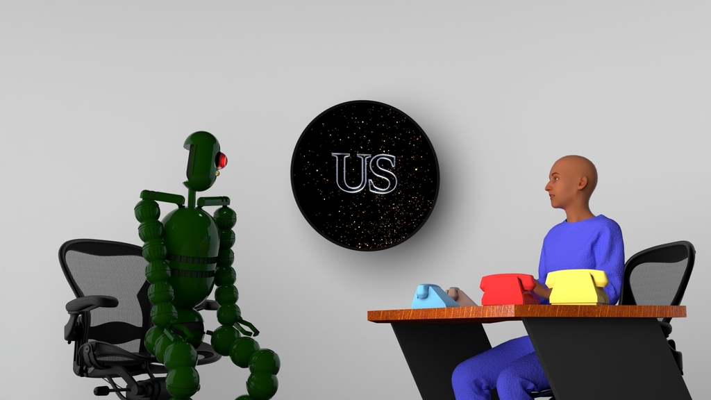 Wandering off grid, and running low on charge, he finds little help from 'good people', but is eventually taken in by 'US', a crypto-conglomerate with a labour relations problem.